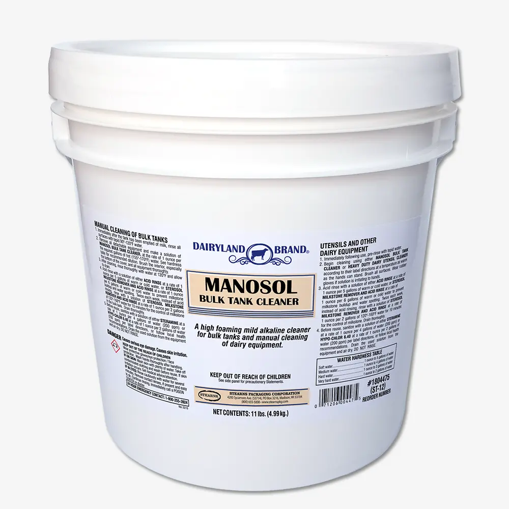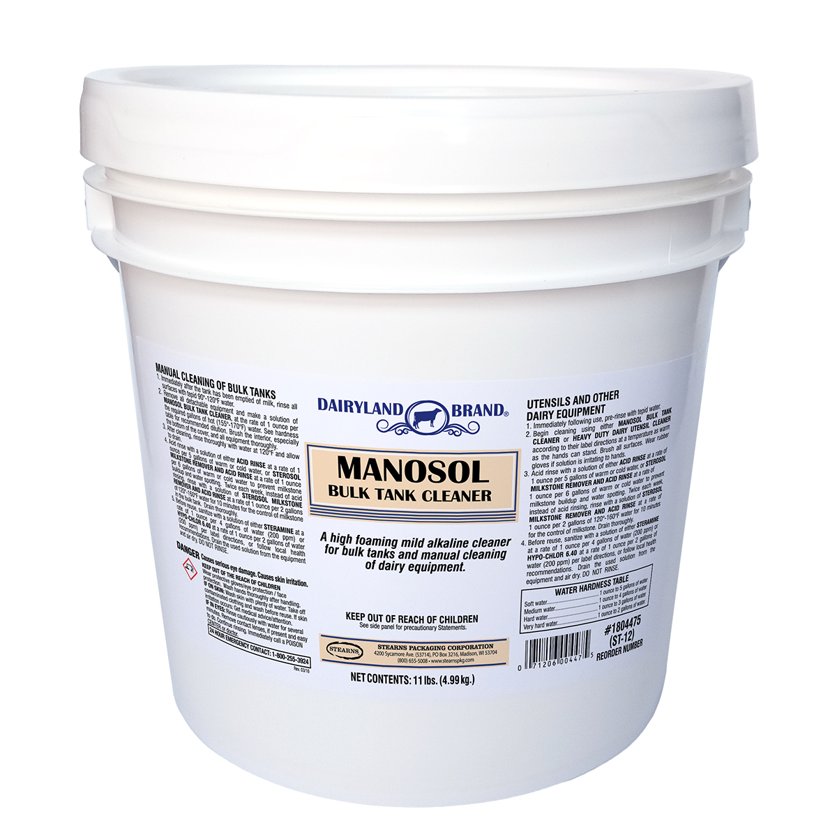 Powdered Manosol Bulk Tank Cleaner is a high foaming, mild alkaline cleaner for bulk tanks and manual cleaning of dairy equipment made of glass, metal, or plastic.